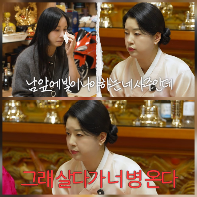 무속인은 “잘난 여자는 잘난 짓을 해야 한다. 숨지 말고 빛나라”고 거듭 강조했다. 이어 “이 아까운 사람을 왜 묻어두냐”는 말까지 덧붙였다.