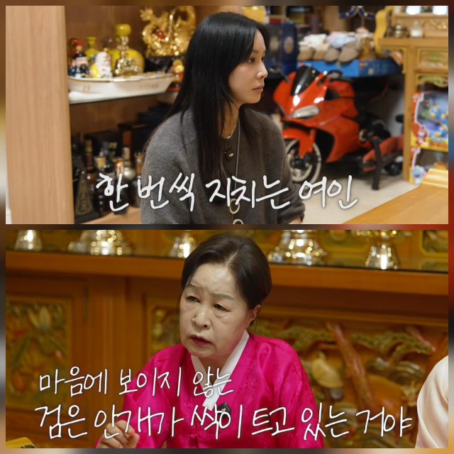 무속인은 “잘난 여자는 잘난 짓을 해야 한다. 숨지 말고 빛나라”고 거듭 강조했다. 이어 “이 아까운 사람을 왜 묻어두냐”는 말까지 덧붙였다.