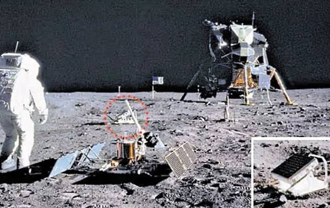 달에 남긴 물체 중에는 지금도 지구와 연락을 주고받는 것도 있다. 아폴로 11호의 닐 암스트롱이 인류 최초로 달에 남긴 발자국에서 수백m 떨어져 있는 거울 상자다. 옷 가방 크기의 이 장치엔 거울 100개가 촘촘히 박혀 있다. 미국 뉴멕시코의 아파치 관측소에서는 맑은 날 밤마다 달의 거울 상자에 레이저를 쏜다. 이 빛은 달의 거울에서 반사돼 지구로 온다.