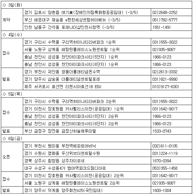 다음 주에는 분양 시장의 성수기인 3월로 접어드는 가운데, 전국적으로 약 6천가구가 공급될 예정이다.