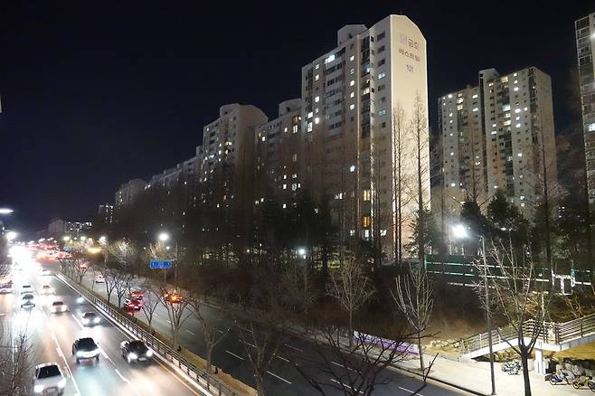 | ▲ 2026년 2월 27일 이재명 대통령이 자신과 김혜경 여사가 공동명의로 보유한 경기도 성남시 분당구 아파트를 매물로 내놓은 가운데 이날 저녁 해당 아파트 단지 모습 |