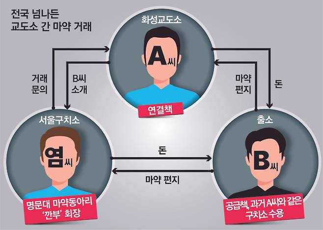 우편으로 교도소로 마약을 반입하는 데 성공한 A씨는 이후 화성직업훈련교도소에서 수용생활을 하면서 본격적으로 마약 연결책 역할을 했다.