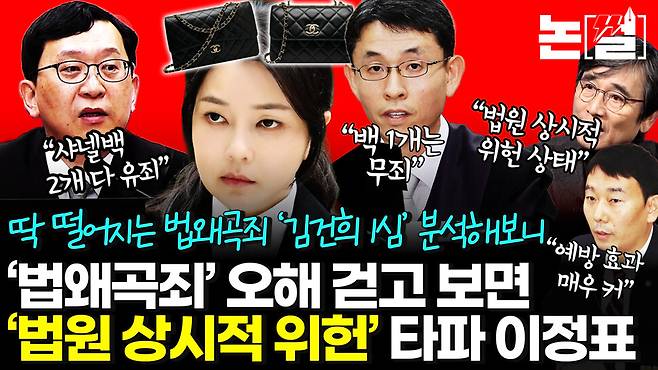 압권은 통일교 쪽에서 받은 금품에 대해 억지로 받은 시점을 쪼개가며 당선 직후에 받은 샤넬 가방은 청탁 대가가 아니라 무죄라고 선고한 대목입니다.