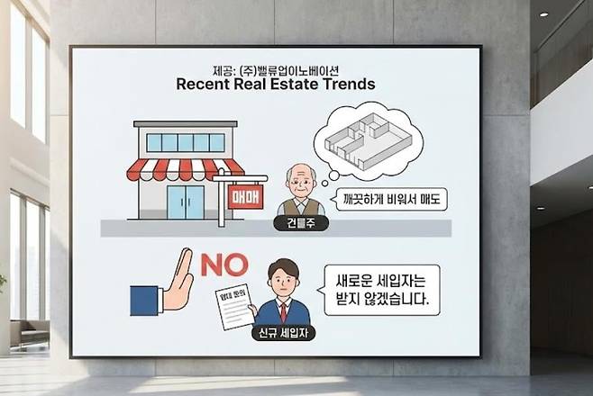 최근 부동산 자산 가치 재평가나 상속 등을 이유로 상가 건물을 매도하려는 건물주가 부쩍 늘었습니다. 이때 가장 많이 하시는 말씀이 “건물을 깨끗하게 비워 매수인에게 넘겨줘야 하니 새로운 세입자는 받지 않겠다”는 것입니다.