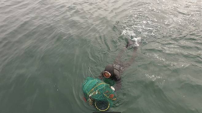 배가 닿는 곳은 물살이 세고 파도가 높은 바다 한가운데다. 이들은 깊은 물속으로 몸을 던져 해삼과 해산물을 채취한다. 수심이 깊을수록 물의 압력은 강해지고 한 번의 호흡에 의지한 채 버텨야 하는 시간도 길어진다. 시야는 흐리고 조류는 몸을 밀어내며 바닷속은 늘 예측할 수 없는 위험을 품고 있다.