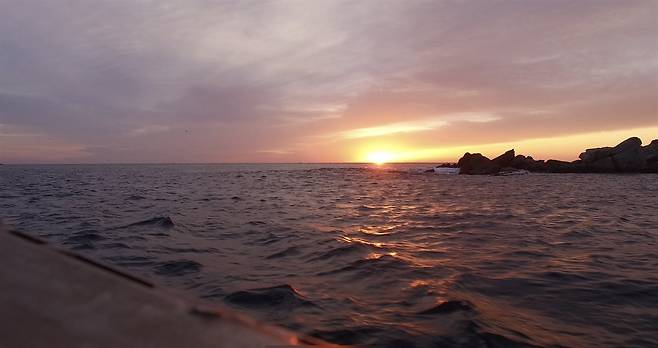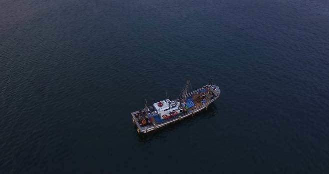| ▲ 저도어장 위에 떠 있는 해녀들을 실은 어선, 그들에게는 안식처이자 삶의 터전인 바다다 |