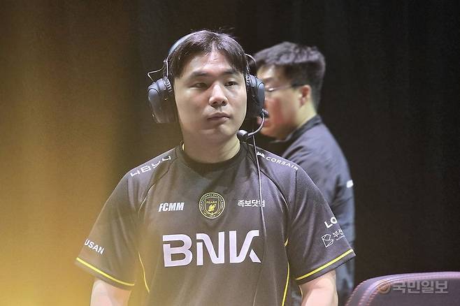 BNK 피어엑스 신형섭 코치도 뒤에 서서 선수들을 지켜봤다.