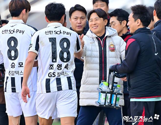 조영욱에 대한 칭찬도 부탁하자, 김 감독은 웃으며 "(조)영욱이도 여러 포지션을 소화한다. 똑똑하다. 많은 경쟁자들이 오면서 경쟁하면서 이전보다 조금 밝지 않고 진중하다. 경쟁해야 하지 않나"라며 "연습경기하며 선발로 많이 못나갔다. 시즌 들어와서 선발로 나가고 자신감을 얻었던 것 같다. 그 자리에 뛰면서 임무를 줬는데 임무 수행을 정말 잘 했다. 좋은 기회가 왔고 마무리했다. 계속해서 좋은 모습 기대한다"라고 밝혔다.
