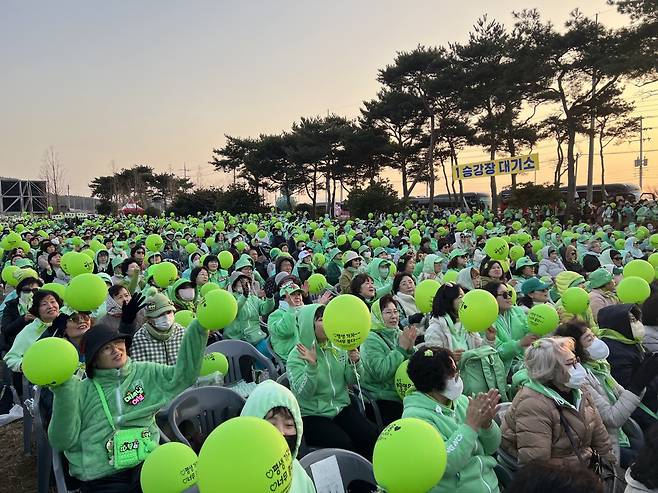 28일 오후 전남 강진에서 열린 ‘강진 청자축제’ 초청 공연에서 황영웅은 뜨거운 환호 속 무대에 올랐다. 현장에는 팬클럽 파라다이스의 ‘그린 물결’ 응원과 군민들의 호응이 이어졌다.