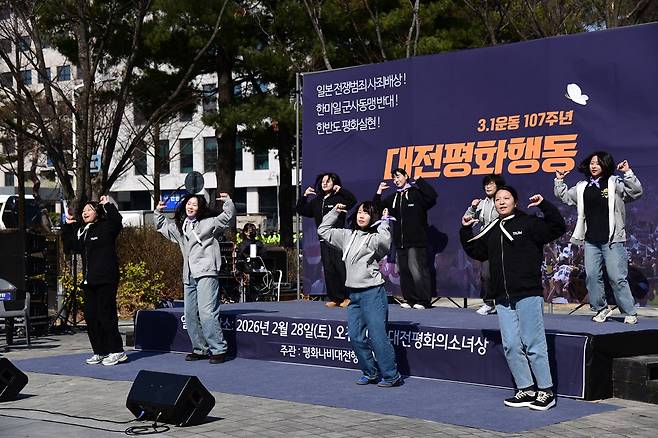 대전평화여성회 최영민 공동대표도 발언에 나서 "광복을 맞은 지도 80년이 지났지만, 일본 정부는 여전히 진심 어린 사죄와 반성의 모습을 보여주지 못하고 있다"며 일본을 향해 규탄의 목소리를 보탰다. 최영민 대표는 이어 "3.1운동 107년이 되는 2026년, 3월 1일은 이제 일본의 재무장 반대와 과거사 반성 촉구 날을 넘어, 일본 제국주의에 항거하며 외치던 '대한독립만세운동'을 기억하고, 모두가 평등하고 정의로운 나라, 폭력이 아니라 비폭력 평화 시민이 주인이 되는 진정한 독립의 나라를 바라는 사람들에게 용기와 희망을 주는 날"이라고 덧붙였다.