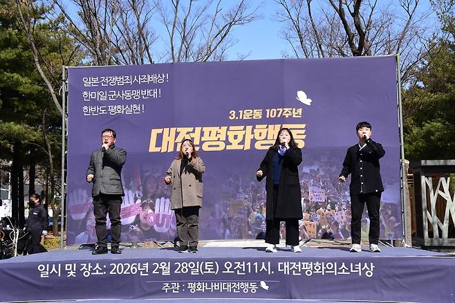 대전 지역 시민사회단체들의 연대체인 평화나비대전행동은 3·1운동 107주년을 하루 앞둔 2월 28일 오전 11시, 대전 평화의 소녀상 앞에서 대전평화행동을 진행했다.