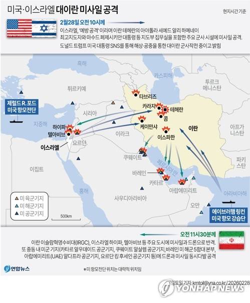 (서울=연합뉴스) 김토일 기자 = 미국과 이스라엘이 28일(현지시간) 오전 이란을 겨냥한 대대적인 군사작전에 들어갔다.