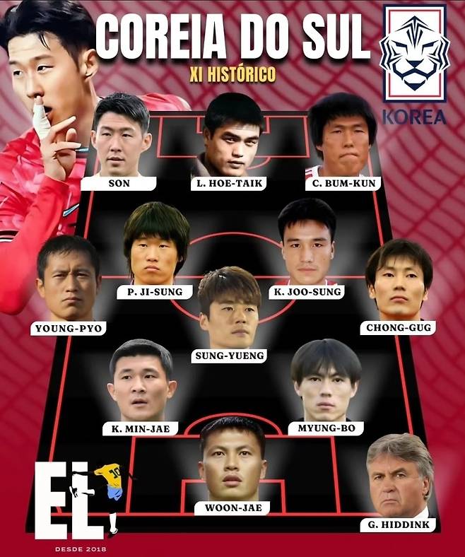 감독은 거스 히딩크로 4-3-3 포메이션이 꾸려진 가운데 최전방 스리톱에 왼쪽부터 손흥민, 이회택, 차범근이 포진했다.