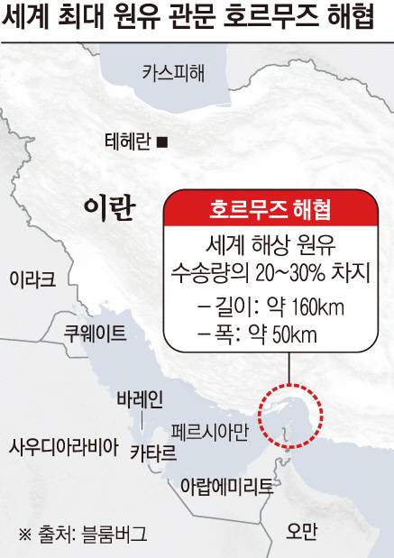 호르무즈 해협은 사우디아라비아·이란·이라크·아랍에미리트(UAE) 등 주요 산유국을 오만만과 아라비아해로 연결하는 세계 최대 원유 수송로다. 전 세계 해상 원유 물동량의 20∼30%가 이곳을 통과한다. 해협 봉쇄가 장기화하거나 군사적 충돌로 이어질 경우 글로벌 에너지 시장과 해운업계에 중대한 충격이 불가피할 전망이다.