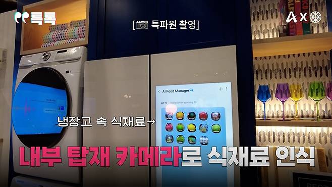 이 냉장고는 내부 카메라를 이용해 식재료를 인식하는 기능을 갖추고 있습니다.