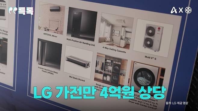 LG의 프리미엄 빌트인 브랜드 SKS 냉장고를 비롯해 올레드 TV 등 LG 가전제품만 80여 개가 들어가 있었습니다.