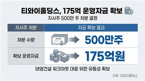 태영건설 워크아웃(기업 구조개선작업)의 파고를 넘고 있는 티와이홀딩스[363280]가 보유 자사주 소각으로 시장참가자들의 신뢰를 되찾을 수 있을지 이목이 쏠린다.