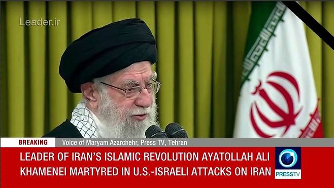 이란 국영방송 프레스TV와 국영통신 IRNA도 "이슬람혁명의 지도자 아야톨라 세예드 알리 하메네이가 미국과 이스라엘의 이란에 대한 공격으로 순교했다"고 보도했다. 국영방송 앵커는 흐느끼며 아야톨라 하메네이의 사망 소식을 전했다.