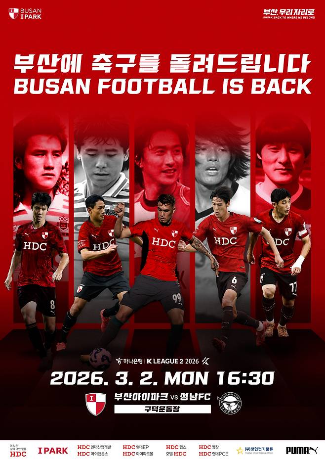 '부산에 축구를 돌려드립니다' 부산아이파크의 개막 메시지…정용환-김주성-안정환 등 레전드를 언급한 이유