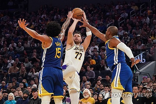 ‘돈치치·르브론 48점 합작’ LAL, 커리·포르징기스 빠진 GSW 제물로 3연패 탈출