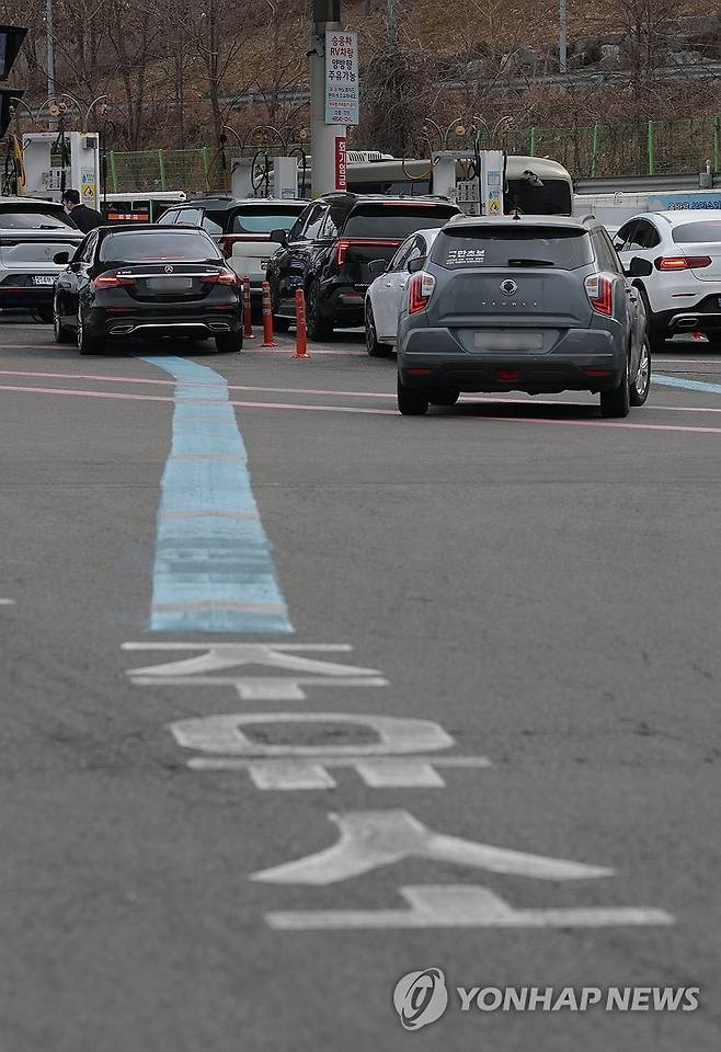 미국과 이스라엘의 이란 공격과 이에 따른 이란 최고 지도자 아야톨라 세예드 알리 하메네이의 사망 보도로 국제유가 급등이 예상되는 가운데 1일 서울 서초구 만남의광장 주유소에서 시민들이 차량에 기름을 넣고 있다.