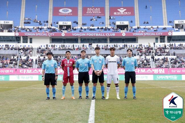 용인FC는 1일 오후 2시 용인미르스타디움에서 열리는 '하나은행 K리그2 2026’ 1라운드에서 천안시티FC와 2-2 무승부를 거뒀다. 이로써 창단 최초로 K리그 경기를 치른 용인은 천안과 승점 1점을 나란히 챙겼다.