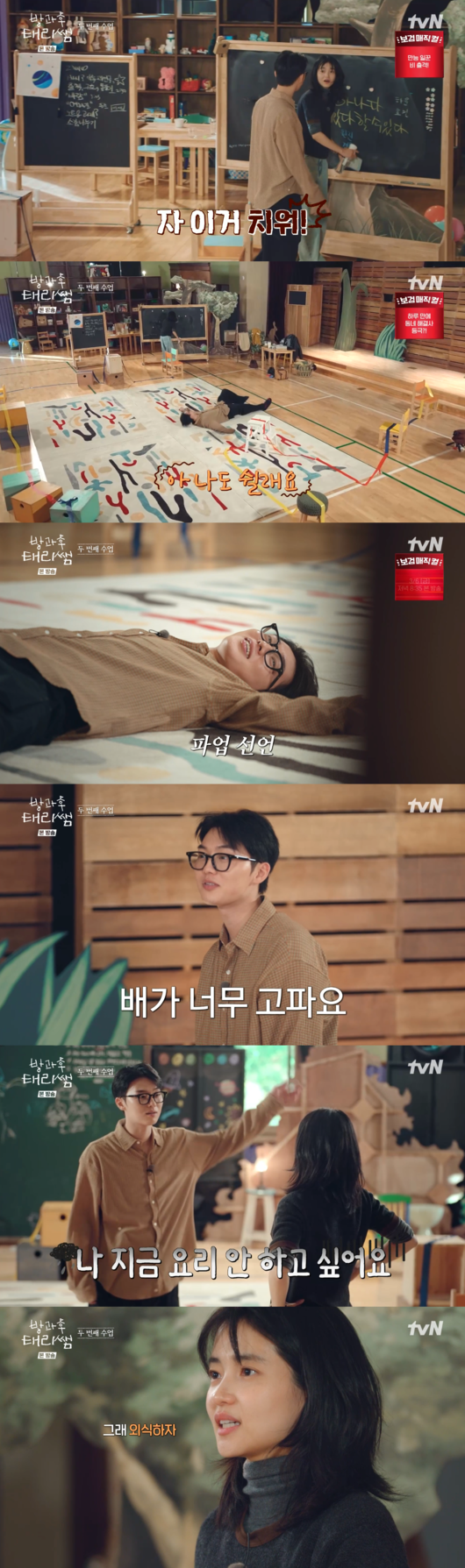 '방과후 태리쌤' 폭풍 같은 수업이 끝난 후, 체력이 고갈난 최현욱과 김태리의 모습이 그려졌다.