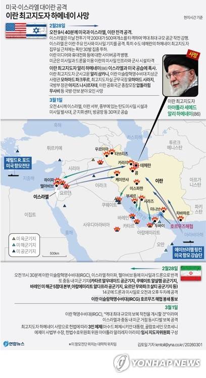 [그래픽] 미국·이스라엘 대이란 공격 이란 최고지도자 하메네이 사망(종합2보)