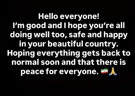 아사니는 1일(한국시간) 자신의 SNS를 통해 이란에서 무사하다는 점을 알렸다.