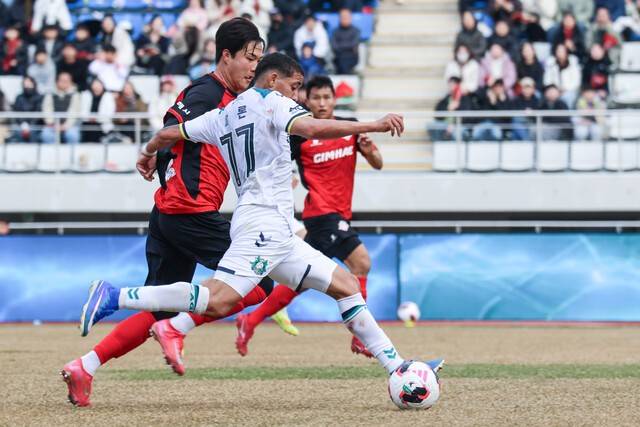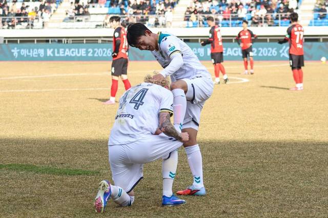 안산 그리너스(이하 안산)가 지난 2월 28일 오후 2시 김해종합운동장에서 열린 하나은행 K리그2 2026 개막전에서 김해 FC 2008(이하 김해)을 4-1로 꺾고 승점 3점을 획득했다.