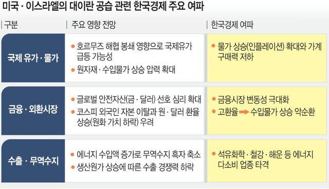 우리나라도 국제유가 상승, 호르무즈 해협 봉쇄에 따른 물류비 증가, 환율·증시 쇼크 등에 고스란히 노출된다.
