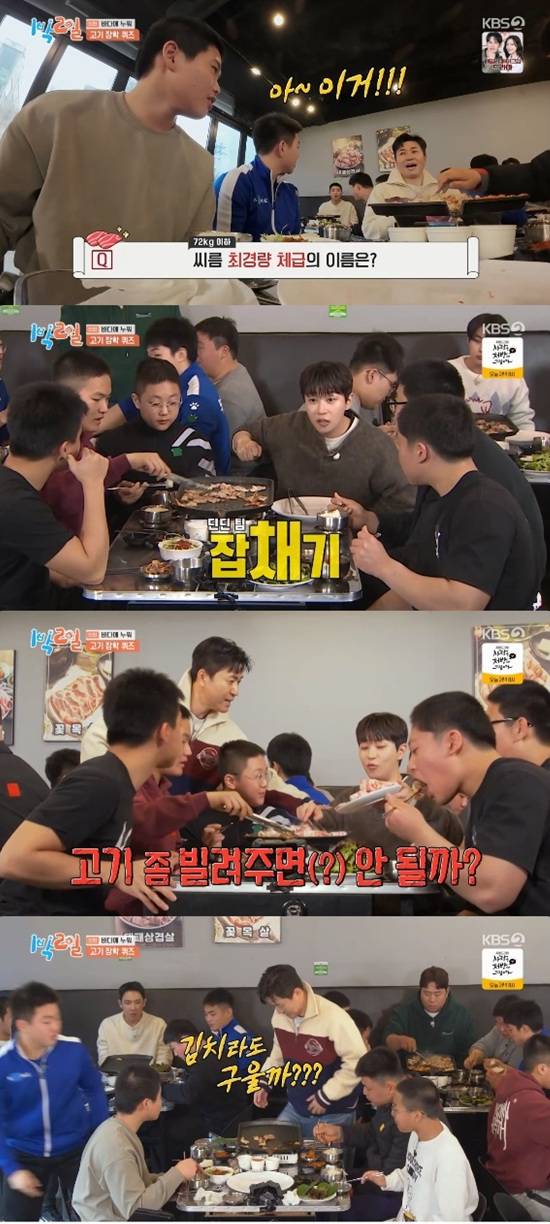 문세윤이 정답 소백을 맞힌 뒤 이준, 딘딘, 유선호가 차례로 정답을 맞히며 고기 리필을 했다.