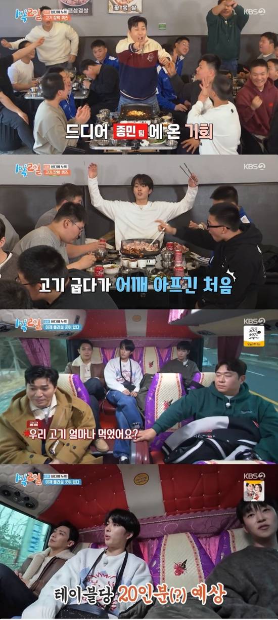 '제작비 1.5배 초과' 멤버들, 씨름부 학생들 먹성에 깜짝..."고기 굽다 어깨 아프긴 처음" (1박 2일)[전일야화]
