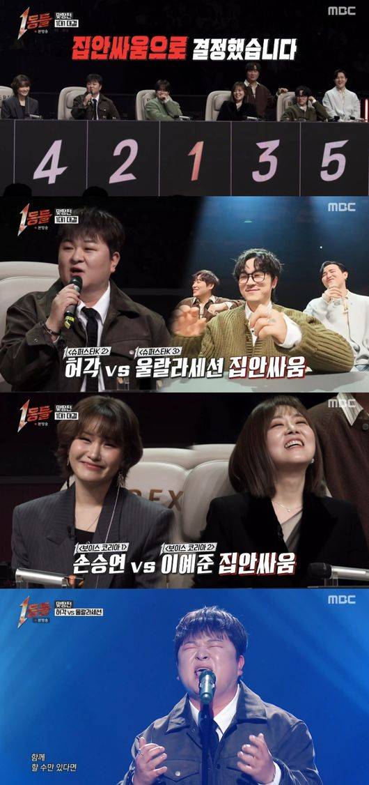 1일 방송된 MBC 예능 ‘1등들’ 3회에서는 지난 주 1등에서 5등을 차지한 가수들의 맞짱전이 펼쳐졌다.