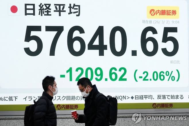 미국과 이스라엘의 이란 공습 여파로 2일 일본 증시가 급락했다.