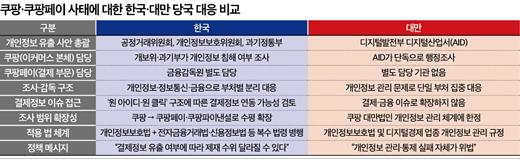 쿠팡 개인정보 유출에 대해 행정적 과실을 철저히 따지고 엄정 처벌을 예고한 점에선 양국의 기조가 같지만, 쿠팡과 쿠팡페이 간의 '원 아이디·원 클릭' 정책에 따른 쿠팡페이의 결제 정보 유출 여부에 대한 문제의식은 결을 달리하고 있습니다.
