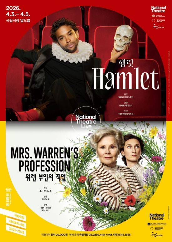 국립극장이 오는 4월3~5일 달오름극장에서 영국 국립극장(NT)의 공연 실황을 고화질 영상으로 소개하는 NT 라이브(Live) 무대를 선보인다. 영국 연극사를 대표하는 두 거장 윌리엄 셰익스피어와 조지 버나드 쇼의 대표작을 만날 수 있다. 셰익스피어의 대표 비극 '햄릿'이 4월3~4일, 버나드 쇼의 문제작 '워렌 부인의 직업' 4월4~5일 각각 두 차례씩 상영된다. 올해는 셰익스피어 서거 410주기이자 버나드 쇼 탄생 170주년이 되는 해다.