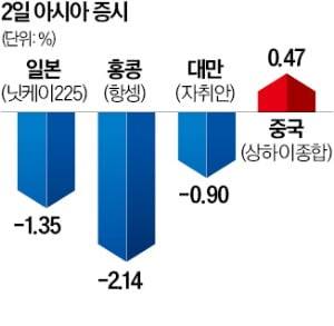 한국 증시가 3·1절 대체휴일로 휴장한 2일 아시아 증시는 대부분 하락세를 보였다.