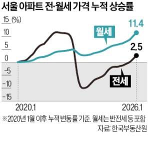 한국부동산원에 따르면 서울 아파트 월세(반전세 포함)는 지난해 3.9% 올랐다. 월세가 3% 넘게 오른 것은 2015년 관련 통계 작성 이후 처음이다. 서울 전역을 토지거래허가구역으로 묶어 갭투자(전세 끼고 매매)를 금지하고 실거주 의무를 강제한 작년 ‘10·15 대책’ 이후 전세 매물 급감 속에 월세 오름폭이 커졌다. 전세뿐 아니라 월세 상승으로 젊은 층의 주거 사다리가 흔들린다는 우려가 나온다. 송승현 도시와경제 대표는 “전·월세 물건 부족과 가격 상승으로 젊은 층의 주거비 부담이 커질 수 있다”고 말했다.