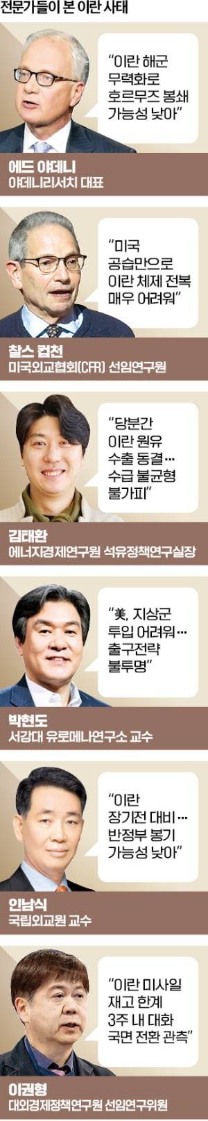 체제가 무너졌을 때 파장이 우려된다는 분석도 많았다. 이란이 민족별로 분열하면 호르무즈해협 관리 주체가 약화하면서 국제 물류 혼란이 커질 수 있다는 것이다. 컵천 연구원은 “군과 치안당국이 강경 대응하면 이번 사태가 이라크·아프가니스탄식 장기 혼란으로 번질 위험이 크다”고 우려했다.