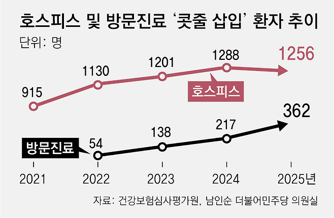하지만 단순히 임종 시기를 늦추는 장치라고 판단해 콧줄 삽입을 거부하는 환자나 보호자도 동시에 늘고 있다. ‘존엄한 죽음’을 위해 콧줄 삽입이 필요한지에 대한 사회적 논의를 서둘러야 한다는 지적이 나온다.