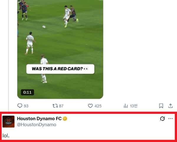 '큭큭큭' 손흥민, 아킬레스건, 심하게 찍혔는데 미친 건가...휴스턴 구단과 감독 모두 레드카드 판정에 불만 토로