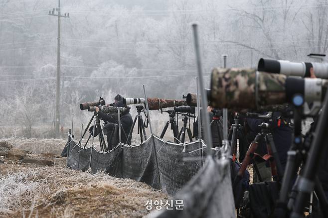 싱가포르에서 온 킴벌리 씨는 “이렇게 많은 독수리를 한자리에서 보는 건 처음”이라며 감탄했다. 자국에서 겨울을 나던 독수리 두 마리가 굶어 죽었다는 소식을 접한 뒤 한국의 독수리 식당을 알게 됐다. 꼭 와보고 싶단 마음이 들어 여행 중에 들렀다. 비행기 시간 탓에 먹는 장면은 보지 못했지만 “다음에는 꼭 보겠다”며 웃는 얼굴로 독수리들에게 인사했다.