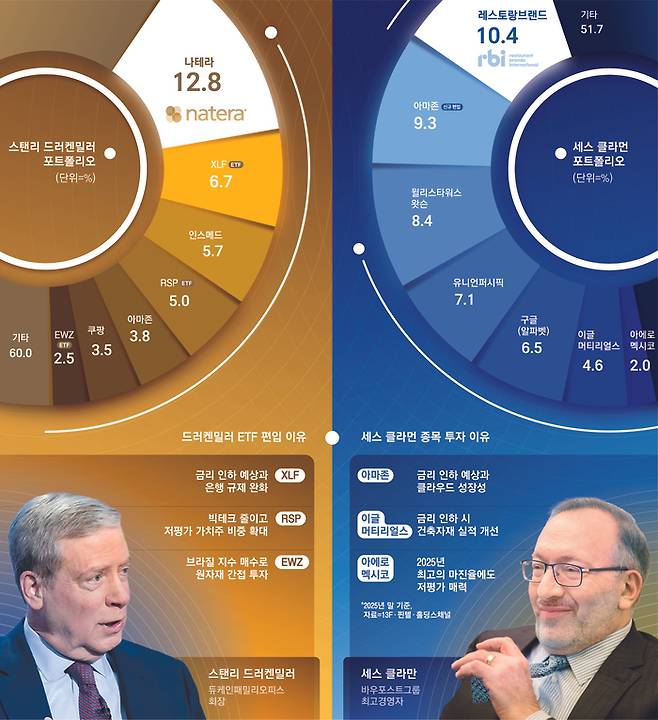 월가 관계자는 “드러켄밀러와 클라먼 모두 금리 인하 수혜가 예상되는 종목들을 미리 사모았다”면서 “미국 주식에 대한 노출도를 줄이고 브라질·멕시코 등 신흥국 비중을 늘리며 나름대로 글로벌 분산 투자로 변동성을 피해가겠다는 전략”이라고 풀이했다.