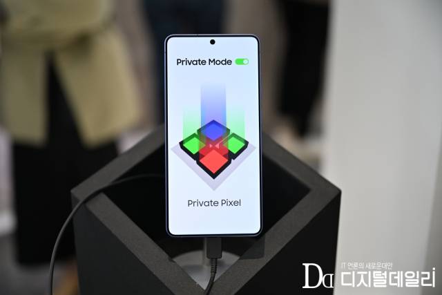 [바르셀로나(스페인)=디지털데일리 김문기기자] "기존 픽셀은 블랙 매트릭스가 없어 빛이 옆으로 퍼지지만, 저희는 격벽을 세워 빛이 위로만 올라가게 만들었습니다. 프라이버시 모드를 켜면 옆에서는 화면이 아예 보이지 않죠."