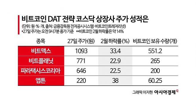 지난해부터 비트코인(BTC)을 사들여 주가 프리미엄을 누리려던 코스닥 상장사들 주가가 비트코인 가격에 따라 '롤러코스터'처럼 움직이고 있다. 이같이 디지털 자산 트레저리(DAT) 전략을 구사하는 회사들은 비트코인 가격이 하락함에도 저가 매수해 차익을 거두겠다는 계획이다. 다만 투자자는 해당 주식에 투자할 때는 주의가 필요하다. 비트코인 상승기에는 레버리지 기대감이나 테마주로 인식해 투기 수요 유입으로 인한 주가 상승 폭이 크나, 하락장에서는 손실이 더 클 수 있기 때문이다.