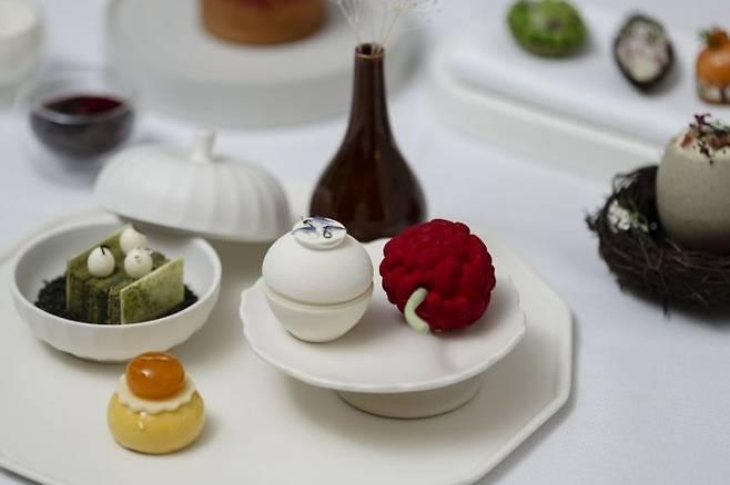 포시즌스 호텔 서울 총괄 패스트리 셰프 스티븐 진이 개발한 '달빛 항아리 케이크'는 진설크림을 모티브로 완성됐다.