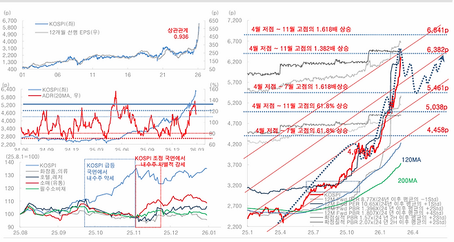 특히 반도체 이익 비중이 코스피 전체의 60% 수준까지 확대되며 실적 장세가 지속되고 있다는 점을 강조했다. 그는 “단기 변동성은 더 멀리 가기 위한 숨 고르기 과정”이라며 “정책과 실적 동력이 재강화될 경우 실적·정책 장세가 보다 견고하게 전개될 것”이라고 밝혔다.