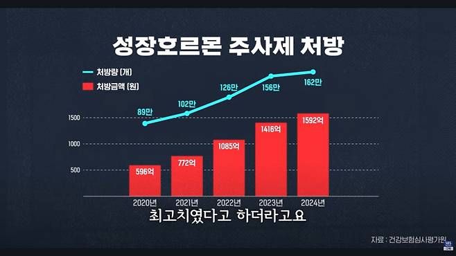 Q. 요새 부모들에게 관심 많은 게 성장호르몬 주사. 정말 많이 한다고 수치상으로도 나타나는 게, 2024년에 성장호르몬 실제 처방 건수랑 액수가 최고치였다고 하더라고요.