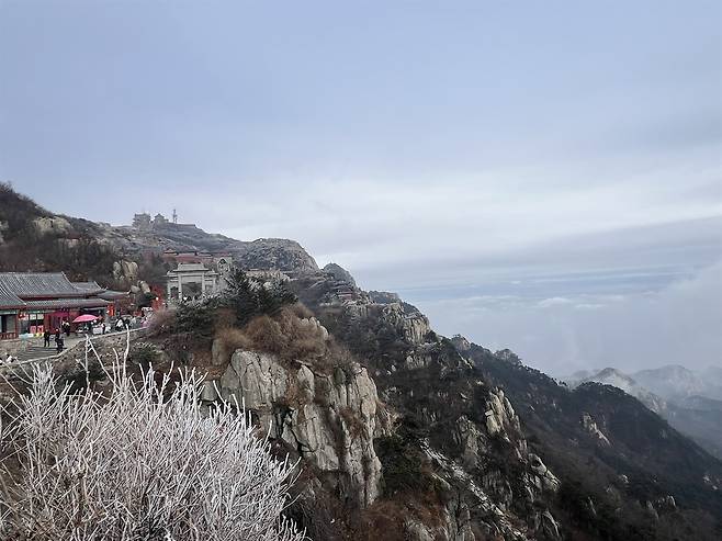 | ▲ 태산(타이산) 태산 정상 부근으로 저 멀리, 최고봉인 옥황정을 볼 수 있다 |